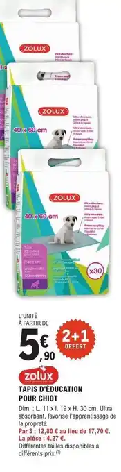 Actuellement en offre chez E.Leclerc : Zolux Tapis d'Education pour Chiot ✅ Valable du 10-02 au 21-02.