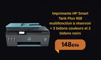 Imprimante HP Smart Tank Plus 658 multifonction à réservoir + 3 bidons couleurs et 2 bidons noirs bénéficie actuellement d'une réduction chez Electro Dépôt. Vous trouverez ici toutes les infos utiles sur les prix, la durée de validité et les conditions de l’offre. Pensez à consulter aussi d'autres offres et promotions similaires pour Imprimante HP Smart Tank Plus 658 multifonction à réservoir + 3 bidons couleurs et 2 bidons noirs afin d’acheter toujours au bon prix. La promo Imprimante HP Smart Tank Plus 658 multifonction à réservoir + 3 bidons couleurs et 2 bidons noirs est valable du 16-01-2026 au 03-02-2026. Offre terminée ? Pas de souci. D'autres offres sur ces produits sont peut-être déjà disponibles. Vous pouvez suivre cette catégorie de produits pour rester informé en cas de nouvelle promotion Imprimante HP Smart Tank Plus 658 multifonction à réservoir + 3 bidons couleurs et 2 bidons noirs chez Electro Dépôt. En comparant les offres, vous êtes sûr d’acheter au prix le plus bas possible.Questions fréquemment posées au sujet de Imprimante HP Smart Tank Plus 658 multifonction à réservoir + 3 bidons couleurs et 2 bidons noirs