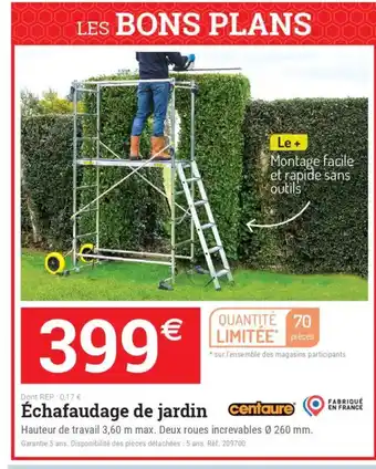 Actuellement en offre chez Espace emeraude : CENTAURE Échafaudage de jardin ✅ Valable du 25-02 au 14-03.