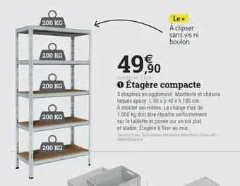 Cette Étagère compacte est maintenant disponible chez Espace emeraude. Découvrez toutes les promos en cours et profitez de réductions intéressantes. Commandez Étagère compacte en ligne via le site officiel de Espace emeraude ou achetez-la en magasin à un prix avantageux. Promocatalogues.fr réunit chaque jour les meilleures offres liées à Étagère compacte. Envie d’être informé en premier ? Activez l’alerte en cliquant sur la cloche pour recevoir une notification gratuite dès que ce produit revient en promotion.Questions fréquemment posées au sujet de Étagère compacte