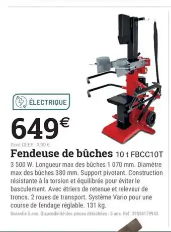 Actuellement en offre chez Espace emeraude : Fendeuse de bûches 10 t FBCC10T ✅ Valable du 14-01 au 31-01.