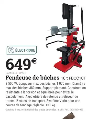 Quand Fendeuse de bûches 10 t FBCC10T sera-t-elle en promotion ? Ou encore : "Est-ce que Fendeuse de bûches 10 t FBCC10T sera en promotion la semaine prochaine ?" C’est une question fréquente. Beaucoup de consommateurs établissent leur liste de courses à l’avance. Pour cette raison, nous mettons en ligne les informations sur les promos à venir dès qu’elles sont connues. Cela vous permet de planifier vos achats et de faire de bonnes affaires. Consultez régulièrement notre site pour savoir si une nouvelle promo sur Fendeuse de bûches 10 t FBCC10T arrive bientôt chez Espace emeraude.Questions fréquemment posées au sujet de Fendeuse de bûches 10 t FBCC10T