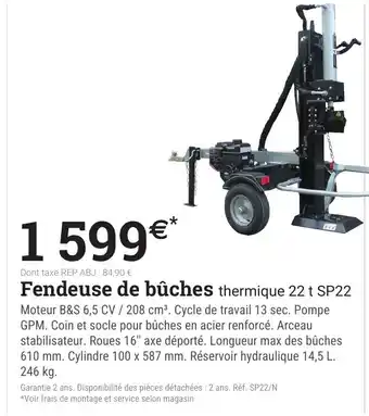 Fendeuse de bûches thermique 22 t SP22 offres et promotions en ligne chez Espace emeraude