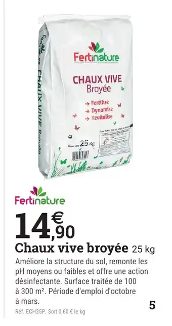 Actuellement en offre chez Espace emeraude : FERTINATURE Chaux vive broyée ✅ Valable du 6-02 au 21-02.