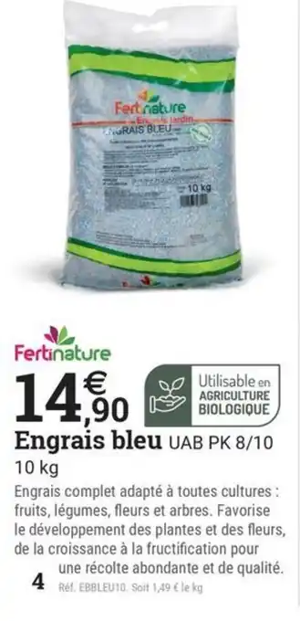 Actuellement en offre chez Espace emeraude : FERTINATURE Engrais bleu UAB PK 8/10 ✅ Valable du 14-01 au 31-01.