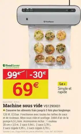 L'offre est disponible dans plusieurs magasins, vérifiez tous les produits pour obtenir le Foodsaver - machine sous vide le moins cher. Si vous souhaitez savoir si l'article est en vente avec une plus grosse remise dans un autre magasin, consultez la catégorie 'Bricolage'. Ces offres pourraient aussi vous intéresser : Poches pour machine sous vide, LE PRATIQUE Machine sous vide & Machine sous vide VS1290X01.
