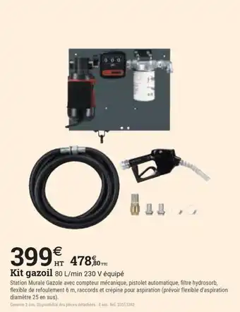Quand Kit gazoil sera-t-elle en promotion ? Ou encore : "Est-ce que Kit gazoil sera en promotion la semaine prochaine ?" C’est une question fréquente. Beaucoup de consommateurs établissent leur liste de courses à l’avance. Pour cette raison, nous mettons en ligne les informations sur les promos à venir dès qu’elles sont connues. Cela vous permet de planifier vos achats et de faire de bonnes affaires. Consultez régulièrement notre site pour savoir si une nouvelle promo sur Kit gazoil arrive bientôt chez Espace emeraude.Questions fréquemment posées au sujet de Kit gazoil