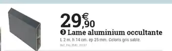 L'offre est disponible dans plusieurs magasins, vérifiez tous les produits pour obtenir le Lame aluminium occultante le moins cher. Si vous souhaitez savoir si l'article est en vente avec une plus grosse remise dans un autre magasin, consultez la catégorie 'Bricolage'. Ces offres pourraient aussi vous intéresser : Pergola en aluminium, Brande de bruyère naturelle occultante 3 m & Cisaille en aluminium.