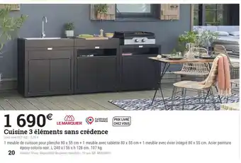 Offre LE MARQUIER Cuisine 3 éléments sans crédence chez Espace emeraude