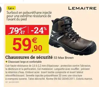 LEMAITRE Chaussures de sécurité s3 Max Brown : offres et promos Espace emeraude à découvrir