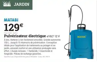 MATABI Pulvérisateur électrique e10LT 12 V offres et promotions en ligne chez Espace emeraude