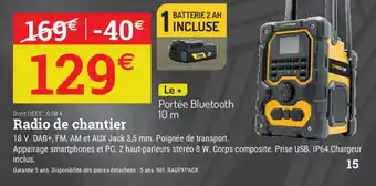 Quand Radio de chantier sera-t-elle en promotion ? Ou encore : "Est-ce que Radio de chantier sera en promotion la semaine prochaine ?" C’est une question fréquente. Beaucoup de consommateurs établissent leur liste de courses à l’avance. Pour cette raison, nous mettons en ligne les informations sur les promos à venir dès qu’elles sont connues. Cela vous permet de planifier vos achats et de faire de bonnes affaires. Consultez régulièrement notre site pour savoir si une nouvelle promo sur Radio de chantier arrive bientôt chez Espace emeraude.Questions fréquemment posées au sujet de Radio de chantier