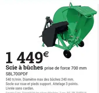 Offre Scie à bûches prise de force 700 mm SBL700PDF chez Espace emeraude