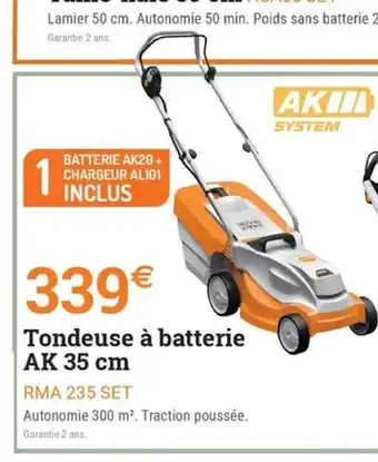 Tondeuse à batterie AK offres et promotions en ligne chez Espace emeraude