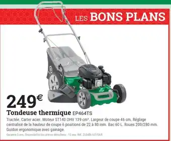 Actuellement en offre chez Espace emeraude : Tondeuse thermique EP464TS ✅ Valable du 1-04 au 18-04.