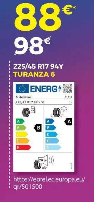 Actuellement en offre chez Euromaster : Bridgestone turanza 6 ✅ Valable du 9-02 au 22-02.