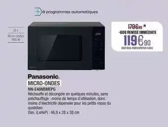 L'offre est disponible dans plusieurs magasins, vérifiez tous les produits pour obtenir le Panasonic - micro-ondes le moins cher. Si vous souhaitez savoir si l'article est en vente avec une plus grosse remise dans un autre magasin, consultez la catégorie 'Multimédia et Electroménager'. Ces offres pourraient aussi vous intéresser : Panasonic micro-ondes, Panasonic micro-ondes & PANASONIC Micro-ondes NN-E48NBMEPG.