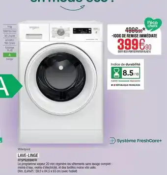 Whirlpool - lave-linge fsf9269wfr : offres et promos Extra à découvrir