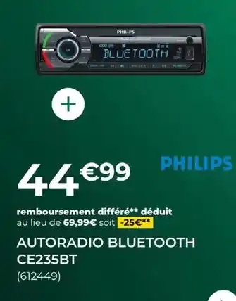 Y a-t-il une promotion sur Philips - autoradio bluetooth сe235bt la semaine prochaine chez Feu Vert ?