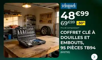 Offre Scheppach - coffret clé à douilles et embouts, 95 pièces tb94 chez Feu Vert