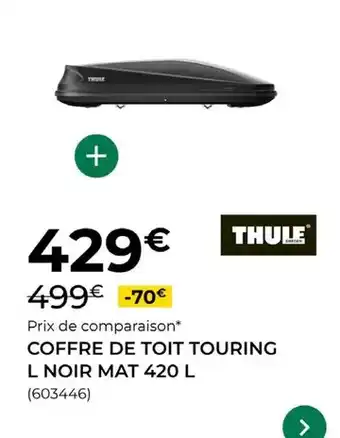 Actuellement en offre chez Feu Vert : Thule - coffre de toit touring l noir mat ✅ Valable du 29-01 au 24-02.