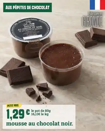 L'offre est disponible dans plusieurs magasins, vérifiez tous les produits pour obtenir le Mousse au chocolat noir le moins cher. Si vous souhaitez savoir si l'article est en vente avec une plus grosse remise dans un autre magasin, consultez la catégorie 'Supermarché'. Ces offres pourraient aussi vous intéresser : GRANDEUR NATURE Mousse au chocolat noir, FERME DU TOUT VENT Mousse au chocolat noir & Mousse au chocolat U.
