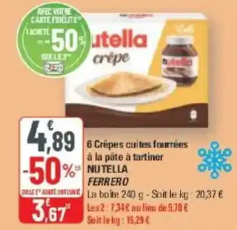 Offre 6 crêpes cuites fourrées à la pâte à tartiner nutella ferrero chez G20