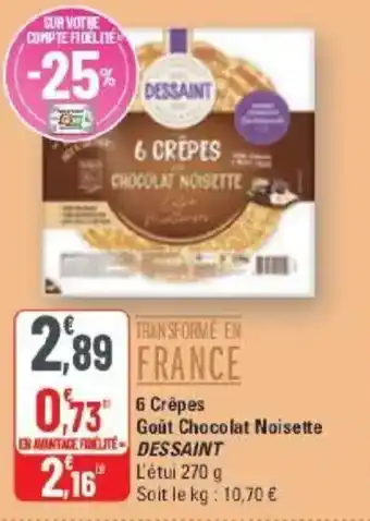 Actuellement en offre chez G20 : 6 crêpes goût chocolat noisette dessaint ✅ Valable du 28-01 au 8-02.