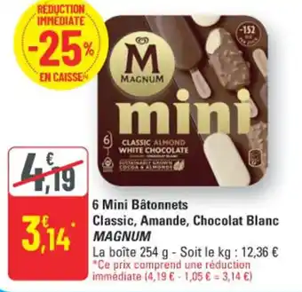 Actuellement en offre chez G20 : 6 mini bâtonnets classic amande chocolat blanc magnum ✅ Valable du 22-04 au 3-05.