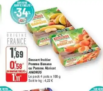 Offre ANDROS Dessert fruitier Pomme Banane ou Pomme Abricot chez G20