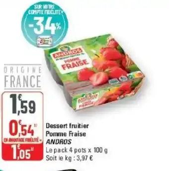 Actuellement en offre chez G20 : ANDROS Dessert fruitier Pomme Fraise ✅ Valable du 11-03 au 22-03.