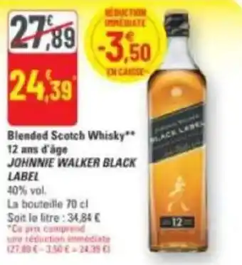 Actuellement en offre chez G20 : Blended scotch whisky 12 ans d'age johnnie walker black label Sait le litre : 34,84€ "Ce prix comp ✅ Valable du 14-01 au 25-01.