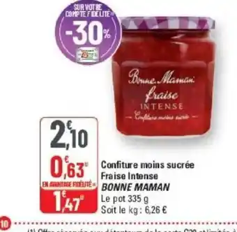 Actuellement en offre chez G20 : BONNE MAMAN Confiture moins sucrée Fraise Intense ✅ Valable du 11-03 au 22-03.