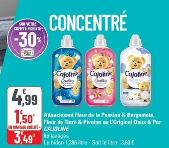 Offre CAJOLINE Adoucissant Fleur de la Passion & Bergamote, Fleur de Tiaré & Pivoine ou L'Original Doux & Pur chez G20