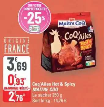 Actuellement en offre chez G20 : Coq'ailes hot & spicy maître coq ✅ Valable du 22-04 au 3-05.