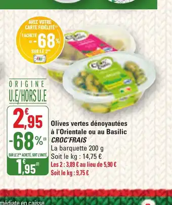 CROC'FRAIS Olives vertes dénoyautées à l'Orientale ou au Basilic offres et promotions en ligne chez G20