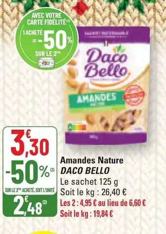 Actuellement en offre chez G20 : DACO BELLO Amandes Nature ✅ Valable du 17-12 au 31-12.