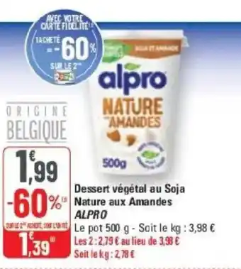 Dessert végétal au soja nature a alpro offres et promotions en ligne chez G20