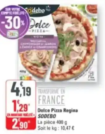 L'offre est disponible dans plusieurs magasins, vérifiez tous les produits pour obtenir le Dolce pizza regina sodebo le moins cher. Si vous souhaitez savoir si l'article est en vente avec une plus grosse remise dans un autre magasin, consultez la catégorie 'Supermarché'. Ces offres pourraient aussi vous intéresser : Sodebo - dolce pizza regina, Pizza dolce regina sodebo & Pizza dolce regina sodebo.