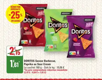 Actuellement en offre chez G20 : DORITOS Saveur Barbecue, Paprika ou Sour Cream ✅ Valable du 17-12 au 31-12.