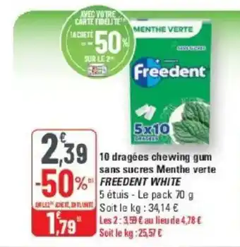 Offre FREEDENT WHITE 10 dragées chewing gum sans sucres Menthe verte chez G20