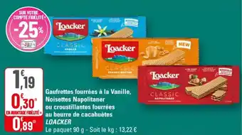 Offre Gaufrettes fourrées à la vanille noisettes napolitaner ou croustillantes fourrées au beurre de cacahuètes loacker chez G20