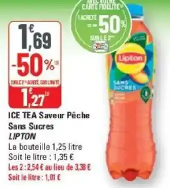 Offre Ice tea saveur pêche sans sucres lipton chez G20