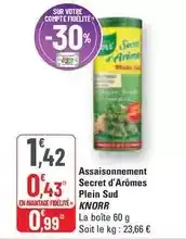 Actuellement en offre chez G20 : Knorr - assaisonnement secret d'arômes plein sud ✅ Valable du 25-02 au 8-03.