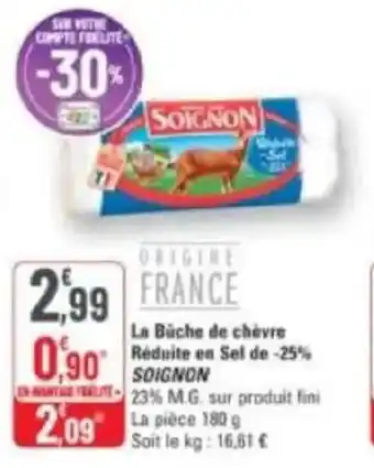 Actuellement en offre chez G20 : La buche de chèvre réduite en sel de -25% soignon ✅ Valable du 14-01 au 25-01.