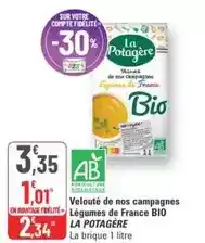 Actuellement en offre chez G20 : La potagère - velouté de nos campagnes légumes de france bio ✅ Valable du 31-12 au 11-01.