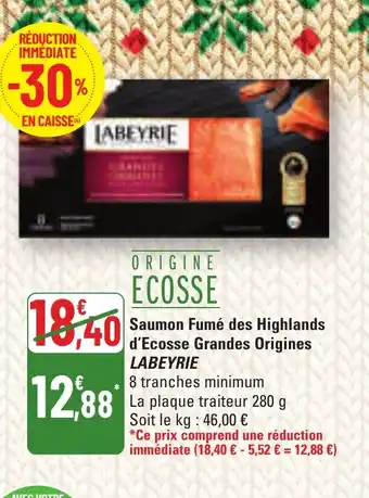 Actuellement en offre chez G20 : LABEYRIE Saumon Fumé des Highlands d'Ecosse Grandes Origines ✅ Valable du 17-12 au 31-12.