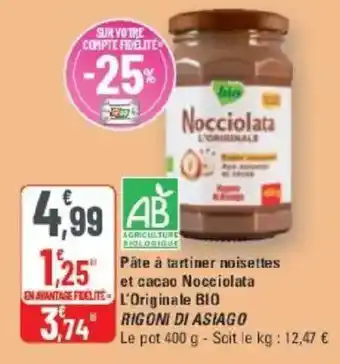 Offre Pâte à tartiner noisettes et cacao nocciolata l'originale bio rigoni di asiago chez G20