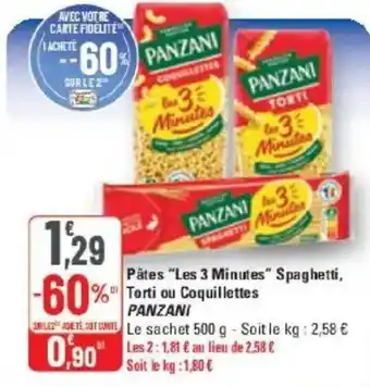 Offre Pâtes les 3 minutes spaghetti torti ou coquillettes panzani chez G20