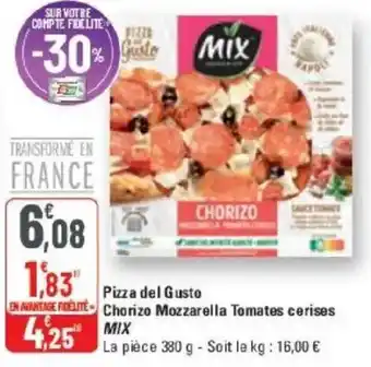 Pizza del gusto chorizo mozzarella tomates cerises mix : offres et promos G20 à découvrir